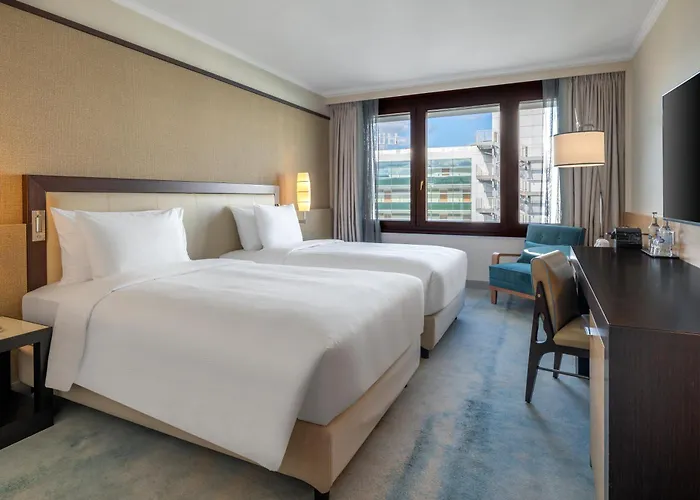 Det fantastiska 4-stjärniga Hilton Geneva Hotel And Conference Centre, som ligger i sjödistriktet, erbjuder en inomhuspool och ett fitnesscenter. Hotellet har 496 rum i shoppingsområdet, inom 10 minuter med bil från Jet d'Eau-fontänen.